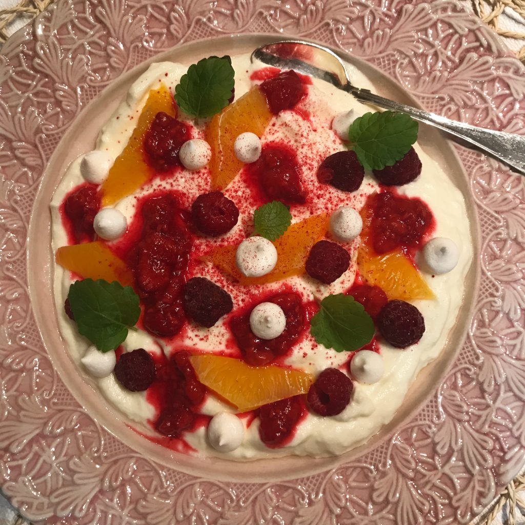 Varje måndag kommer jag framöver att bjuda på en lite lättare dessert, som passar även dom som tänker på figuren – Healthy monday helt enkelt! Vad sägs till exempel om denna supergoda marängsviss med ett fluff gjort på äggvita och vaniljkvarg, toppad med filéad apelsin och hallonsås. För kristets skull också några hederliga maränger (väger dock väldigt lite = totala mängden socker blir liten). För mig är det viktigt att sprida matglädje som alla kan ta del av och det hoppas jag att jag kan förmedla med healthy monday.
